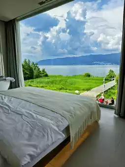 Pure white minimalist style + Cangshan Mountain & Erhai Lake views, every corner is aesthetic perfection! Vintage furniture, art pieces... design details everywhere, and when sunlight streams in, it's breathtakingly beautiful🌅