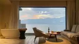 3, enter the hotel lobby, first through a transitional courtyard, then oversized floor-to-ceiling windows, take a panoramic view of the magnificent scenery of Erhai and Cangshan. With an area of over 1,200 square meters, the hotel has only 13 rooms, dedicating more space to public areas such as the cliff restaurant, infinity water view deck and glass terrace.