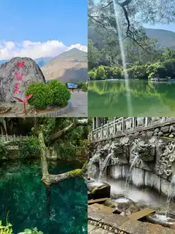 • Main Spring Area: Originally called "Bottomless Pool" with crystal-clear water and ancient silk trees. Best during April-June, especially during the April 15th lunar calendar Butterfly Festival when swarms gather.