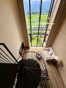 Panoramic floor-to-ceiling windows facing Cangshan and the fields