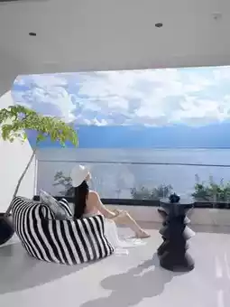▪ Style: Pure Santorini vibes! White and blue hues with Nordic-inspired design, featuring cacti, a cliffside pool, and 270° floor-to-ceiling windows… Every corner looks like it’s straight out of a painting, with a 100% photo-perfect rate.