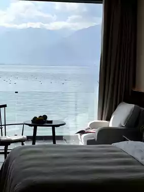 Arrive in the afternoon at Olive Tree Seaview Hotel, where floor-to-ceiling windows give you 180° views of Erhai Lake! Unpack, then lounge around snapping 800 photos. By evening, take a 5-minute stroll to Shuanglang Ancient Town and stuff yourself with brown sugar glutinous rice cakes and grilled milk fans.