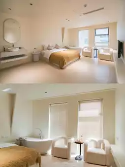 Waking up in the morning, you can see seagulls skimming over the water from your bed; in the afternoon, curl up on the bay window to bask in the sun and watch the clouds slowly drift across the lake; in the evening, soak in the full sea view bathtub and watch the sunset dye the sky orange and pink, making time feel soft. The closed-door management with card access maximizes privacy, and the high-end hardware and amenities reflect understated care.
