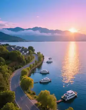 1. Erhai Lake: The absolute star of Dali! Rent an electric scooter and take a leisurely ride along the East Ring Road. The wind whispers in your ears, the azure lake shimmers, and the distant Cangshan Mountains create a stunning backdrop—every shot is a masterpiece. The sunset at Panxi Village’s S-curve is breathtaking, with golden hues reflecting on the water. If time allows, take a cruise to immerse yourself in its charm.