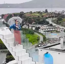 To climb to the top of the building for beautiful souvenir photos, you must purchase a drink of your choice, just like you would an entrance ticket, but also include a drink and fruit to sip on while enjoying the view of the mountains surrounding Erhai Lake.
