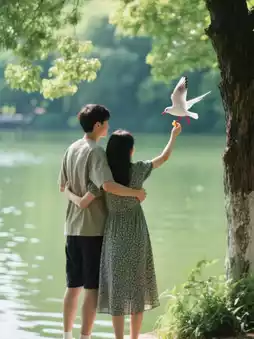 Sweetness MAX: Bring a picnic mat to share Rǔshuǎn and rice cakes under the shade by the shore, when feeding the black-headed gulls, the guy hugs the girl from behind for a candid shot—capturing it is winning! 💑