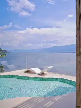Tropical rainforest greenery paired with the azure Erhai Lake