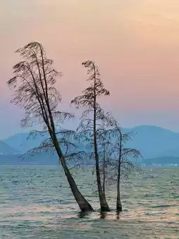 1. Longkan Pier: An excellent spot to watch the sunrise. The sunrise in autumn is around 7:40 AM, so it’s recommended to arrive between 6:30 and 7:00 to secure the best lakeside spot. At this time, the morning mist lingers, and Erhai Lake glows golden under the sunlight, creating a magnificent view. About 10 minutes before sunrise, the sky turns a dreamy pinkish-blue. Wearing a white long dress with a light jacket and shooting against the light will make every hair strand distinct, resulting in highly photogenic shots.