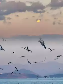4. Xiaoputuo Island: Starting from late October, red-billed gulls arrive here on time. The small Putuo Island looks especially cute against the backdrop of Erhai Lake, surrounded by flocks of seagulls, making it perfect for photos. Be careful not to buy overpriced biscuits from street vendors; a large pack for 10 yuan from the supermarket across the street is enough to feed the gulls. Also, avoid feeding during staff patrol times, or you might not be allowed to feed them freely.