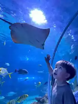 ✅ Must-see show: The dolphin knight performance is stunning, dolphins leap out of the water balancing balls, kids clap along with the rhythm. In the underwater tunnel, rays swim overhead, as if you could reach out and touch them.