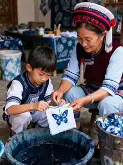 ✅ Immersive experience: Bai grandmother teaches tie-dyeing scarves, kids use rubber bands to tie butterfly shapes, dip them in indigo dye vats, and when unwrapped, the blue and white patterns make the little ones scream with delight. At the butterfly breeding base, you can see the full process from larvae to chrysalis and even make butterfly specimens by hand (remember to book the workshop in advance).