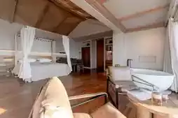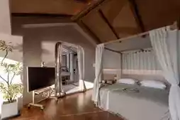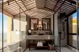The infinity pool reflects the sunset, while the Dyson hairdryer stirs the sea breeze.