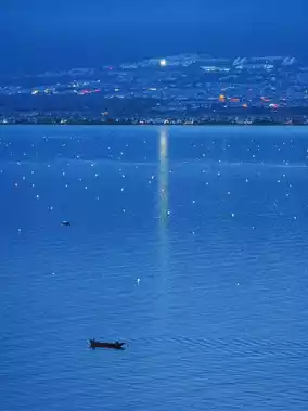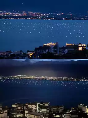 This is a large-scale natural night fishing scene regulated by Erhai’s ecology, where fishing boat lights scatter across the lake like stars—so romantic💕