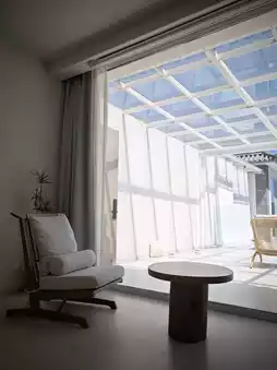 in the evening, cozying up on the balcony to watch the light and shadows of the ecological corridor feels like time slows down.