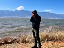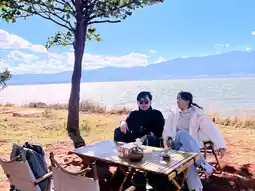 Erhai Lake, also known as "ทะเลสาบเอ๋ออร์ไห่" in Thai and "洱海" in Chinese, is a large lake with a vast area. The atmosphere here feels like being by the sea, with clear water, fresh air, and a cool breeze all day long. It is our favorite spot in Dali city.