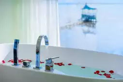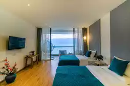 Behind the Bai-style exterior lies a modern, sophisticated interior. With wooden furniture, rattan elements, and floor-to-ceiling glass windows, the sunlight streaming in feels warm and soothing. The sea-view room I booked even came with a scenic bathtub—soaking in it while watching the clouds drift by, you can literally breathe in the fresh, lake-scented air. This is what a vacation should feel like!