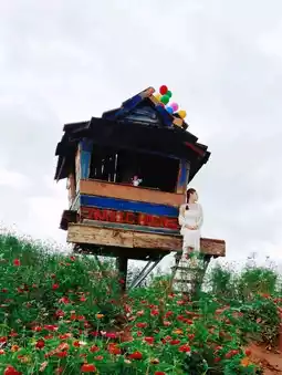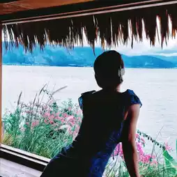 Arrive at your lakeside paradise and let the good vibes roll! Kick off your trip with a relaxing stroll by the water – the cloudy, rainy sky is serving mysterious mood. Take a moment to snap that iconic victory pose with your flower bouquet for absolute Instagram goals. 🌧️🌸