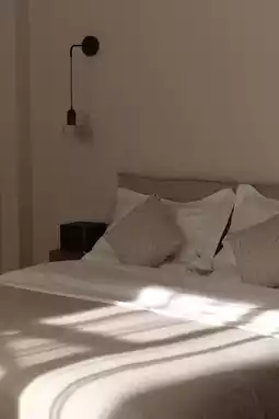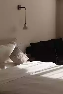 As the evening sun sets, the light slowly climbs up the headboard, wrapping the entire room in a warm golden glow, creating an unparalleled ambiance!