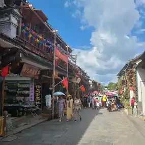 The Ancient City in Dali dates back to the Ming Dynasty and is protected by a big wall. Inside the city you see people wearing traditional clothes and beautiful old traditional buildings. There are plenty of scenic restaurants and bars to choose from, and one can also find lots of traditional souvenirs. The tie-dyed tapestries are exquisite, and can be bought for very reasonable prices.