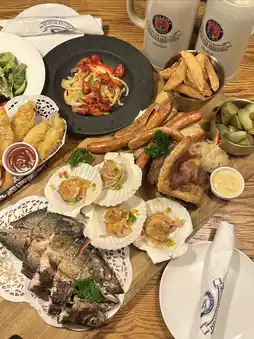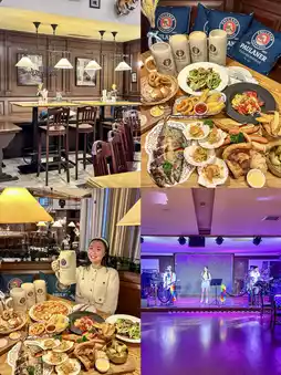 🌟Prana Brewery, the whole journey to Germany, a large barrel in the bar area, dark brown classic German wooden tables and chairs. What you eat here is super authentic German pork knuckles, sausages and beer🍻🍺. There is also a live music concert🎼 at 20:00 every night, I spent Christmas🎅 here, it's very, very atmospheric and happy🥳
