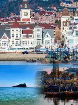 Both sides of the sea are natural mountains, overlooking the Yellow Sea, the natural scenery is beautiful, the color of the fishing boats echoes the azure of the sea, and there are many colorful houses by the sea, which are very beautiful for photography
