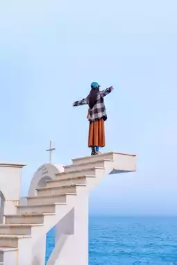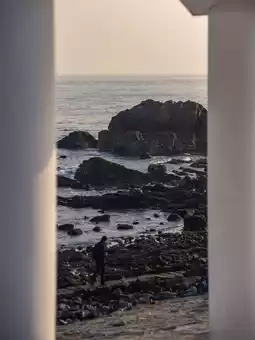 Still go to the left side (because there are fewer people there, many places are photogenic!), there is a white building, shooting the sea stones through the pillars feels very atmospheric!