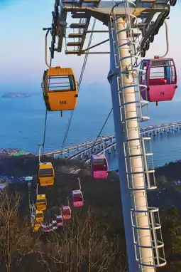 Climb the mountain to the corridor at the praying for blessings sign, you can shoot the Haida cable car and the sea