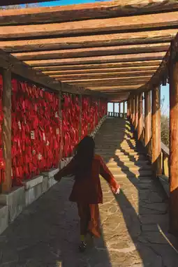 The rotating corridor with the praying for blessings sign when you're about to reach the top, has a very Japanese atmosphere!