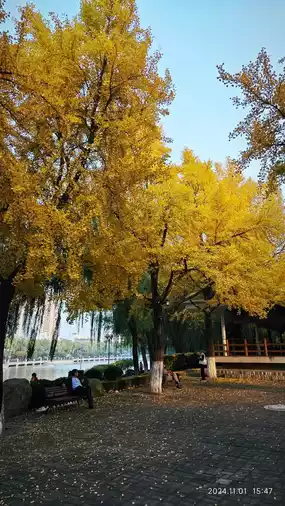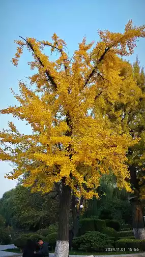 From 3 to 5 p.m., the sun shines obliquely, making the golden color of the ginkgo leaves more vivid, making it the best time to take photos.
