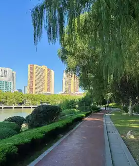 The lake spans over 30,000 square meters, its surface shimmering with light. The granite embankments add to its beauty. From the shore or the pier, you can clearly see red carp swimming freely. The lakeside plastic track is an excellent spot for jogging or strolling, while the quaint pavilion in the center of the lake often echoes with the melodious voices of singers practicing their vocals.