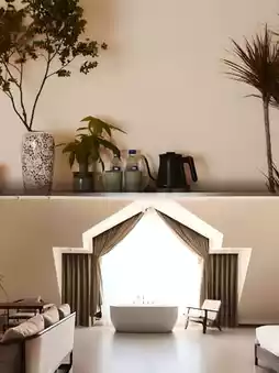 We stayed in the "Ocean View Serenity" room type, where the 270° floor-to-ceiling windows frame the sea view like a painting! The log-colored furniture is matched with cotton and linen soft furnishings, perfectly capturing the *wabi-sabi* style and Nordic feel~ 🌿