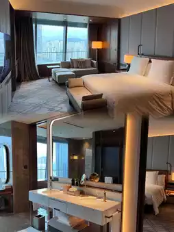 Opt for the city-view room! Starting at 44㎡, its 270° floor-to-ceiling windows frame the harbor and cruise ships 🚢. Lower floors may have obstructed views, so request a higher floor. The 83㎡ Executive Suite boasts a walk-in closet and silky 400-thread-count bedding so plush you'll sink right in—plus a spine-friendly mattress.