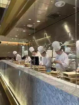 After exploring Dongfang Shuicheng, we arrived slightly late for our reserved time, but showing our number ticket allowed us to be seated immediately. We were given a sunny window-side table with a view of Dongfang Shuicheng. The service was as refined and professional as you'd expect from a high-end restaurant.