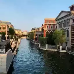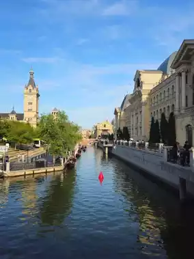 On the Oriental Water City Canal in Dalian, China, gondolas and small cruise ships leisurely pass by, accompanied by strolling pedestrians, street artists, and couples taking photos in front of fountains. The Oriental Water City is not just a themed area; it feels like a living city with buildings, shops, exhibition halls, and squares where people can actually stay. Especially, the European architectural elements are intricately incorporated, making each building a perfect photo spot.