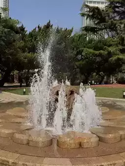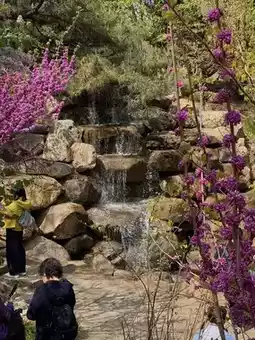 The park is pretty huge – think ponds, little waterfalls, bridges, pavilions, AND a massive red-and-white sphere. 🌍