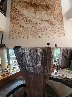 The room is equipped with a smart toilet and electric curtains, and the toiletries are from the Balmain brand, ensuring quality. However, the chair is somewhat worn. The public area design is impressive: the lobby is on the 2nd floor with a high ceiling and spacious feel, decorated with rich marine elements; the 4th floor has a small terrace outside the pool and restaurant, a great spot to watch the sunset, though the area is a bit small; the pool has excellent lighting and faces the sea directly.