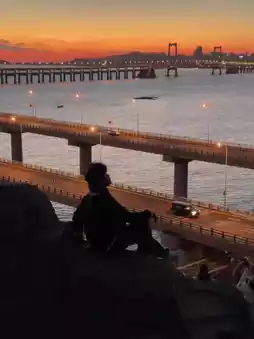 In the early morning, a thin mist shrouds the sea, the bridge's shadow reflected in the water. As the sun rises, its golden light casts a shimmering golden glow across the bridge and the sea. Walking slowly along the bridge, the sea breeze caresses my face, the scent of sea salt blends with the morning light, and the silhouettes of ships drift slowly by in the distance. The entire space is quiet and vast, as if time has slowed down here. The afternoon light is at its brightest, the towers and cables reflected on the sea. The blue sky, white clouds, sea, and bridge interplay with each other, and the interweaving of light and shadow creates a magnificent modern landscape painting.