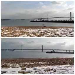 • Coastal Promenade: Photograph the bridge's silhouette against the light, with the reflections of the snow adding a touch of depth.