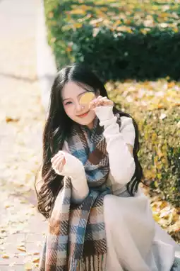 A portrait photography hotspot! Soft light plus a colorful fallen leaf background, backlighting makes hair strands glow.