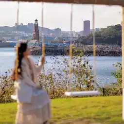 Further in is the seaside swing that many people have checked in at, a peaceful and healing scene. Sitting here swinging might just make all your worries disappear—provided the sea breeze isn’t too strong that day, haha. Slightly changing your angle lets you frame the lighthouse together; if the sunflowers behind are in full bloom, it would be even more beautiful.