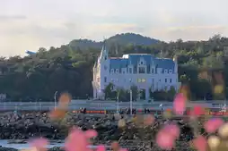 This pure white little beach is like a natural reflector, perfect for portrait photography. When shooting straight on, the background includes the lighthouse, mountains, and the distant city; from above, you get a very clean color palette and composition. Changing direction to follow the light creates a different scene, with so much green it almost makes you forget it’s already autumn.