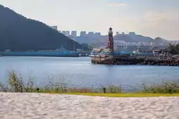 Facing you is a very photogenic stamp frame, and inside the frame is the iconic red lighthouse.