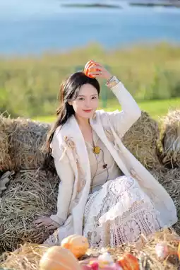 On the seaside lawn, there are some haystacks, giving the area a strong autumn vibe. The whole place is bathed in warm Maillard tones, and the various pumpkins scattered around are great photo props—you can hold them or place them on your head for cute shots. Just remember to put them back after shooting.