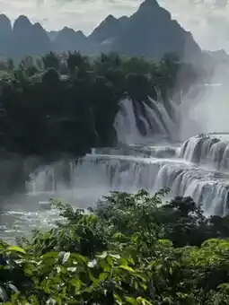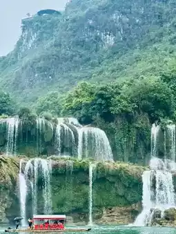 🌊 Ban Gioc Waterfall - majestic, most beautiful when going in the morning, remember to rent a bamboo boat to the foot of the waterfall to fully experience it.