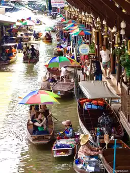 At Damnoen Saduak Floating Market, one of Thailand's most famous tourist destinations, you can immerse yourself in a unique experience that preserves the traditional way of life. Local vendors on colorful boats sell fruits and souvenirs, making shopping on the water feel like stepping into a Thai folk tale. The lively morning market is perfect for photography and offers a close-up encounter with Thai culture.