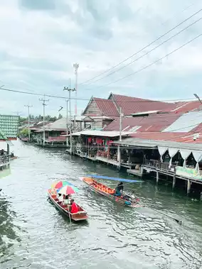 Located next to Damnoen Saduak Floating Market, this spot has a chill atmosphere with retro Thai-style photo spots and relaxing music.