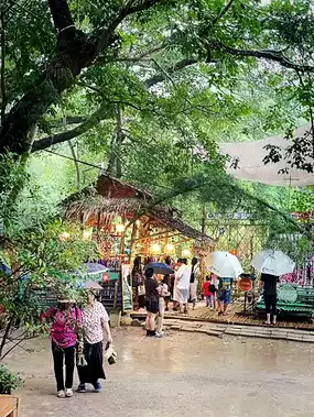 A small market by the stream with a relaxing local vibe. It offers local delicacies, souvenirs, and a small art zone.
