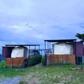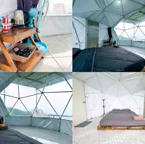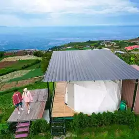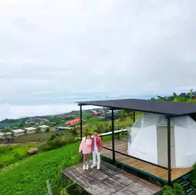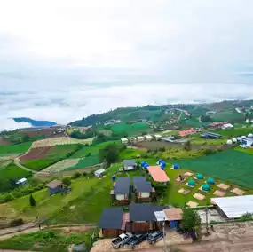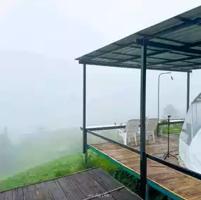 Another accommodation at Phu Thap Boek with a million-dollar view and a very cheap price. The rooms are in a dome-style glamping style with a balcony in front of the room. You can see the cabbage fields covered in fog. When you wake up, just open the curtains and you will see the sea of fog. The room comes with amenities such as bedding, pillows, blankets, fans, private bathrooms, with water heaters, and the accommodation also provides barbecue, a la carte food, and breakfast. It's very good value for money. You can't find this price anywhere else. 🥰
