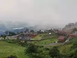We arrived in the evening and found the mountaintops blanketed with white fog. The air was incredibly cool. We were planning to enjoy the view, but we had to retreat to our room because the fog was so thick.