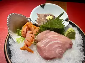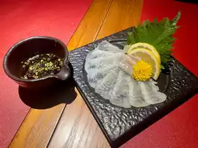 Left-mouth fish sashimi ($108) 🐠 Thinly sliced left-mouth fish, rich fish flavor, with sour sauce, piece by piece very quickly eaten